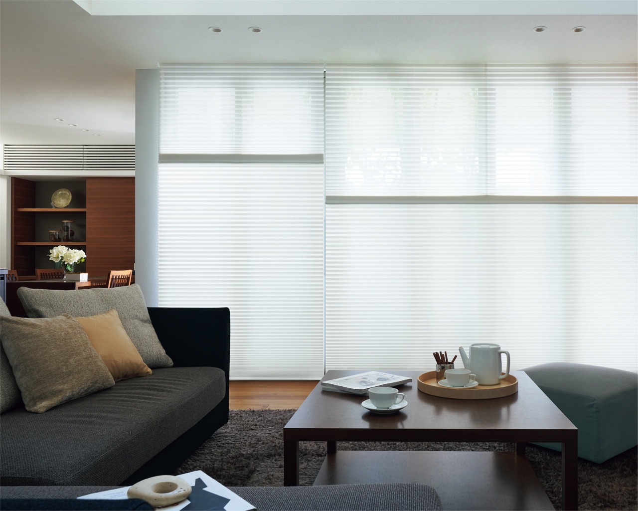 また、ハニカムスクリーンはその見た目も魅力のひとつ。プリーツ状に整った生地が美しく、窓まわりをすっきりと上品に見せてくれます。光をふんわりと取り込むレース調のものから、外からの光をしっかり遮る遮光タイプまで種類も豊富で、ツインタイプなら上下でレースと遮光を使い分けることもできます。